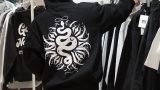 バックの袖の部分もポップなロゴが入っていて