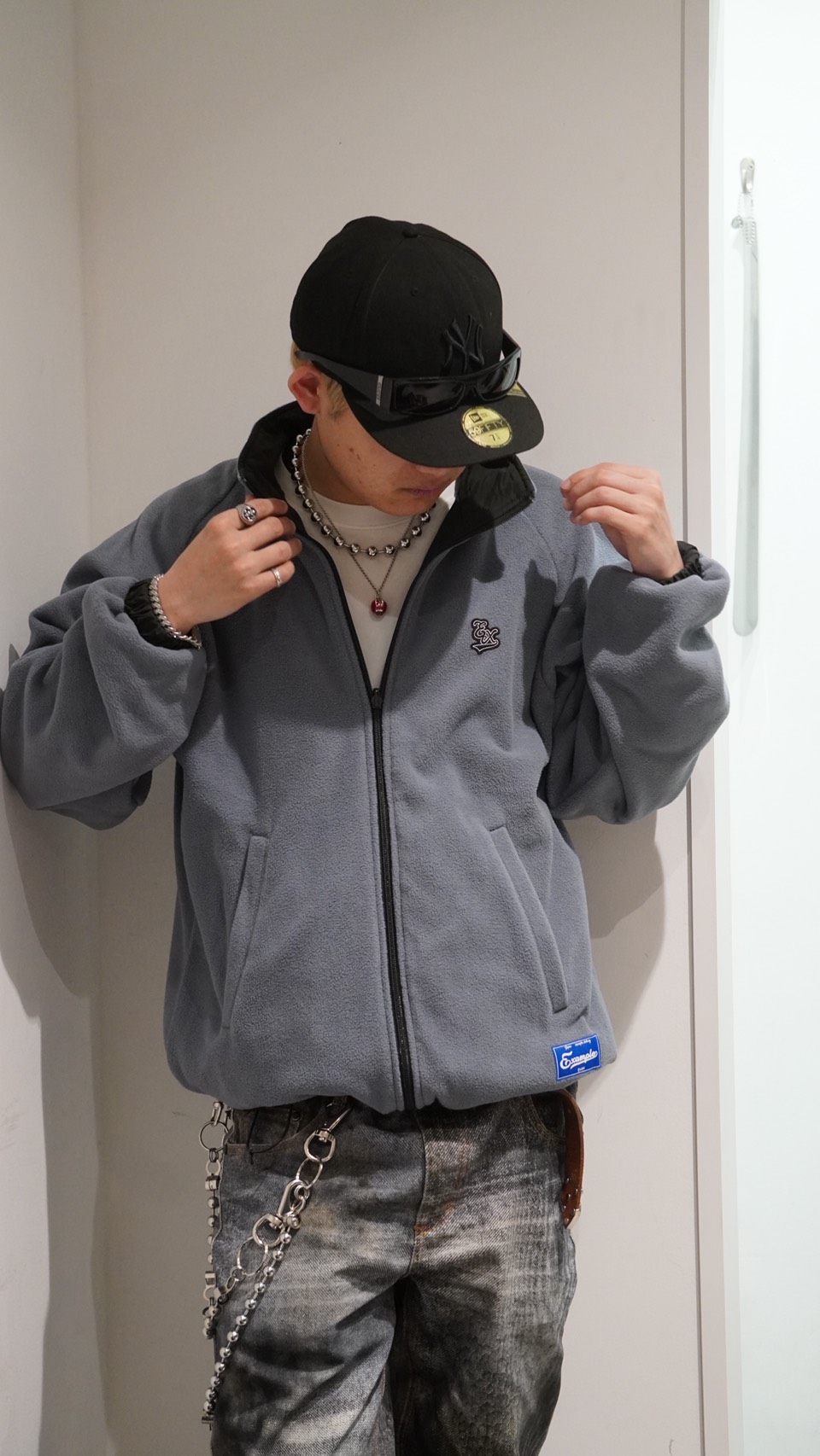 裏地はフリースになっていてEXロゴのワッペンが胸元についているとてもシンプルになっています。